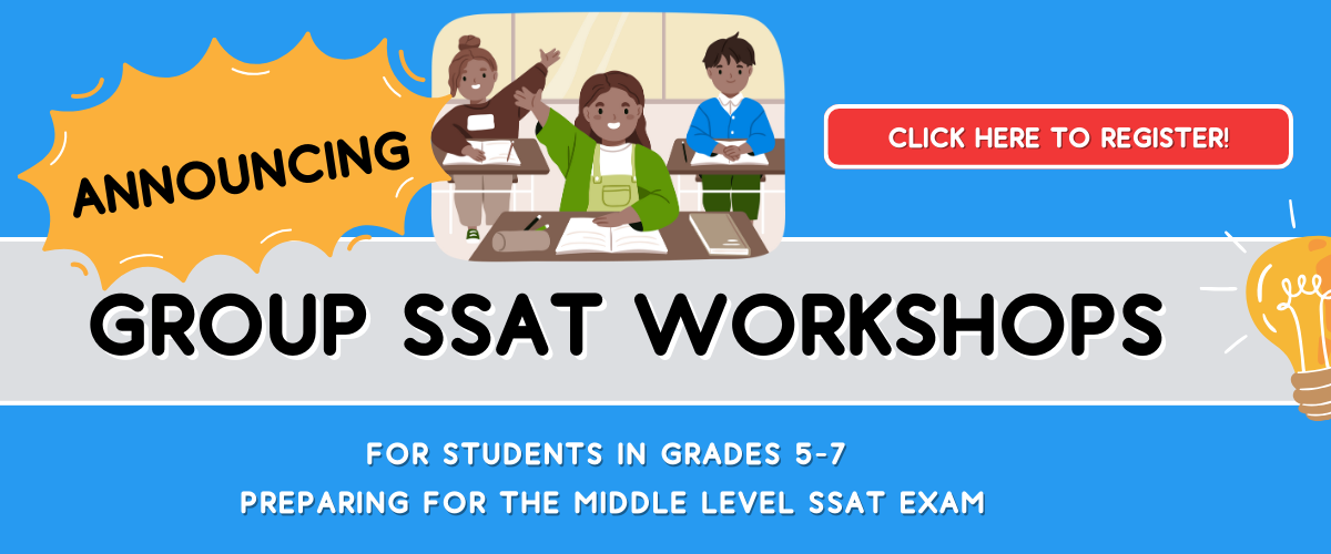 We have four dynamic group workshops running this fall for students in Grades 5-7 who are preparing for the Middle Level SSAT exams! Through collaboration and expert-led instruction, students will learn test-taking strategies, practice SSAT-specific questions, and walk away more confident, skilled, and ready for the challenge!